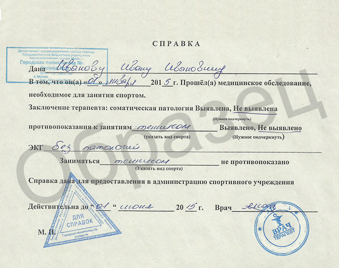 Справка в спортзал